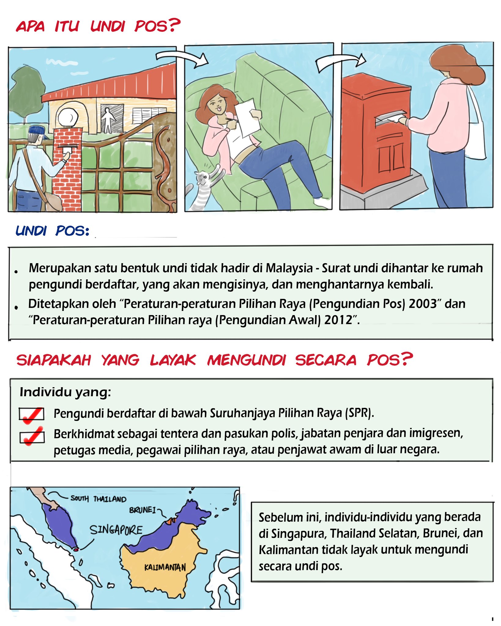 Pengundian pos melibatkan pengundi tidak hadir yang terdiri daripada Angkatan Tentera dan pasangannya anggota polis serta pasangan PGA yang terpaksa menjalankan tugas operasi pada hari mengundi pelajar di. Jenis-Jenis Pengundian Terdapat tiga jenis pengundian di Malaysia. B Pengundian pos ianya melibatkan pengundi tidak hadir yang terdiri daripada angkatan tentera dan pasangannya pelajar di luar negara dan pasangannya serta kakitangan awam.